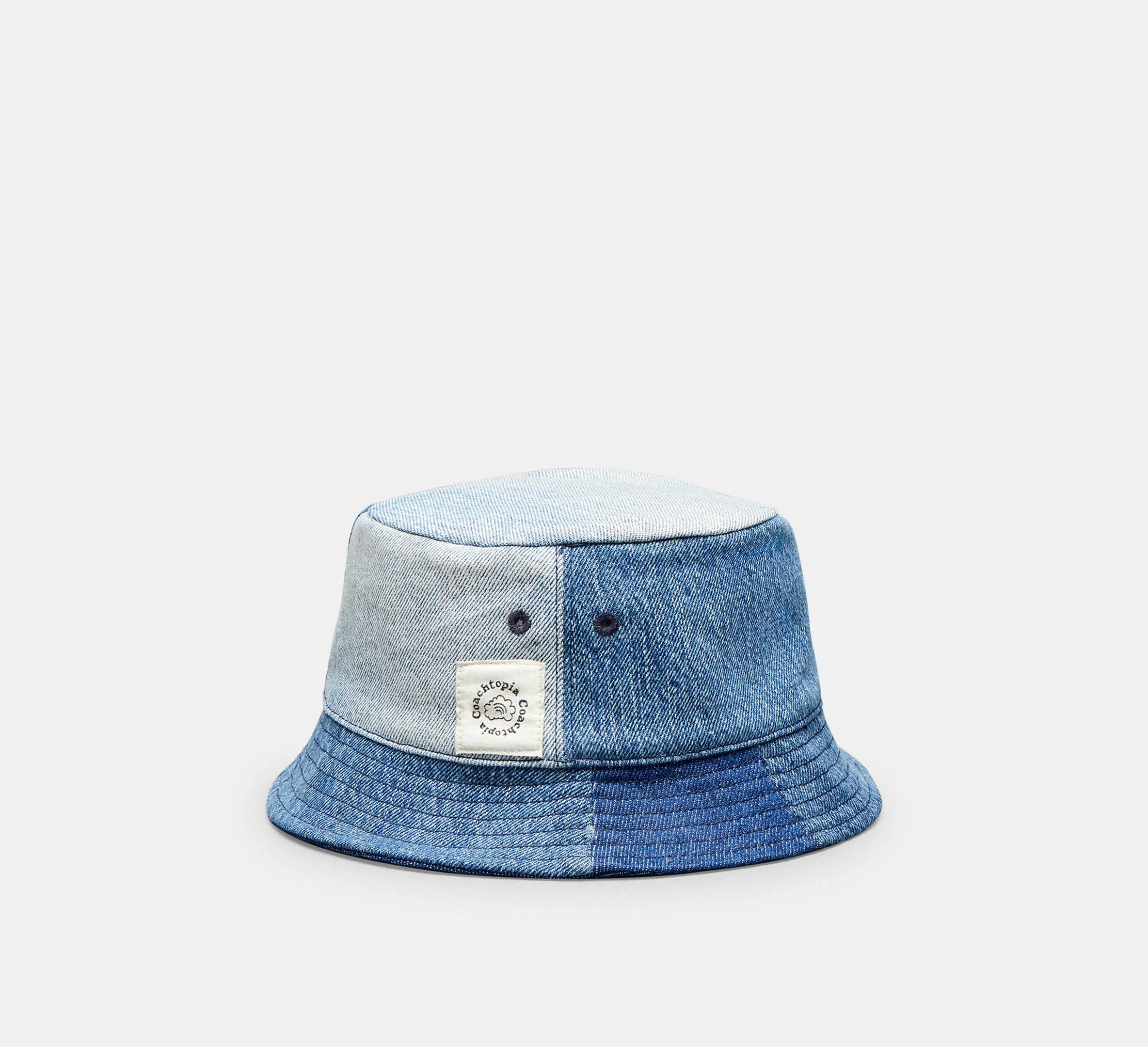Coach created this up-cycled denim bucket hat from repurposed garments, giving each hat a unique look. No two are the same, so you can own a one-of-a-kind twist on the style.