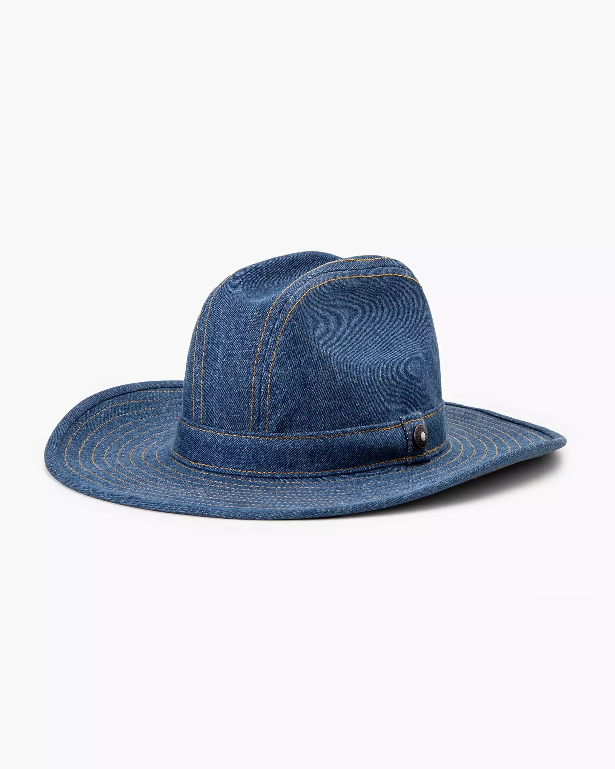 Denim cowboy hats first appeared during the rhinestone cowboy era of the 70s and 80s, often bedazzled with embroidery and sparkle. Levi’s Rodeo Hat strips away the rhinestones for a cleaner indigo look, but thanks to Beyoncé’s Cowboy Carter, even this pared-back version feels glam. The topstitched seams with gold thread is a heritage Levi’s design, adding authentic detail to the more modern shape of the crown.