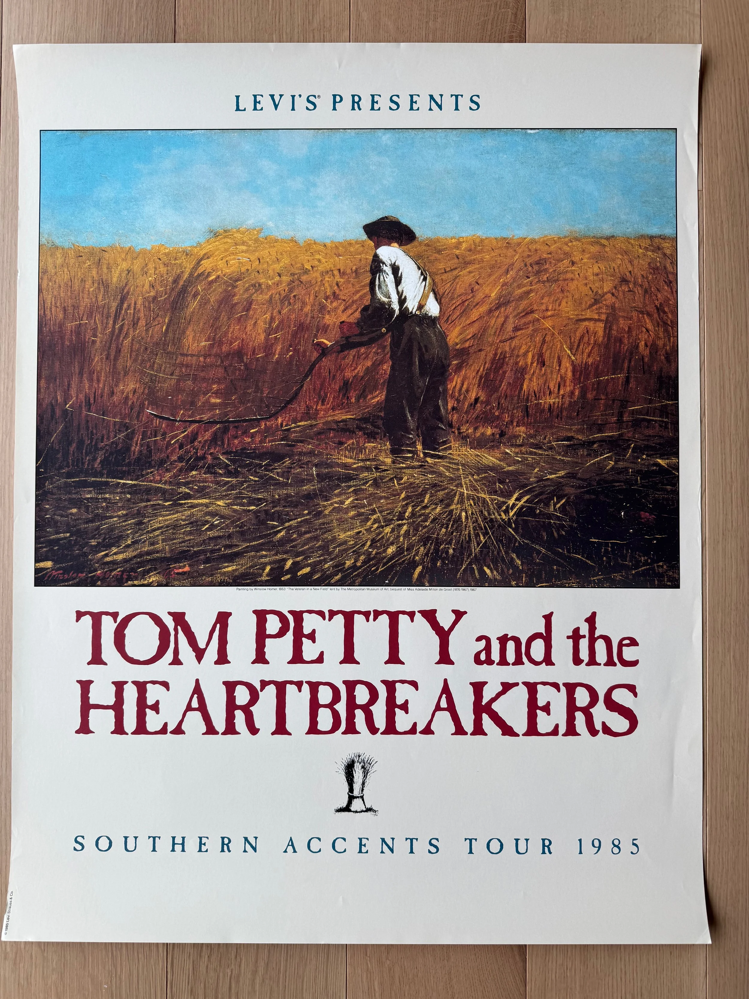 This poster marked Levi’s foray into high-profile music sponsorship in the mid-1980s. The central image is “The Veteran in a New Field” (1865) by Winslow Homer, the classic American painting used as the album art for Tom Petty’s Southern Accents. The album was Southern Americana heartland rock, a fitting match for the Levi’s brand image of the working-class hero. Winslow Homer’s painting symbolizes American roots and resiliency to forge a new era. The poster positions Levi’s as a brand with both a celebrated heritage, as well as relevance in modern culture.