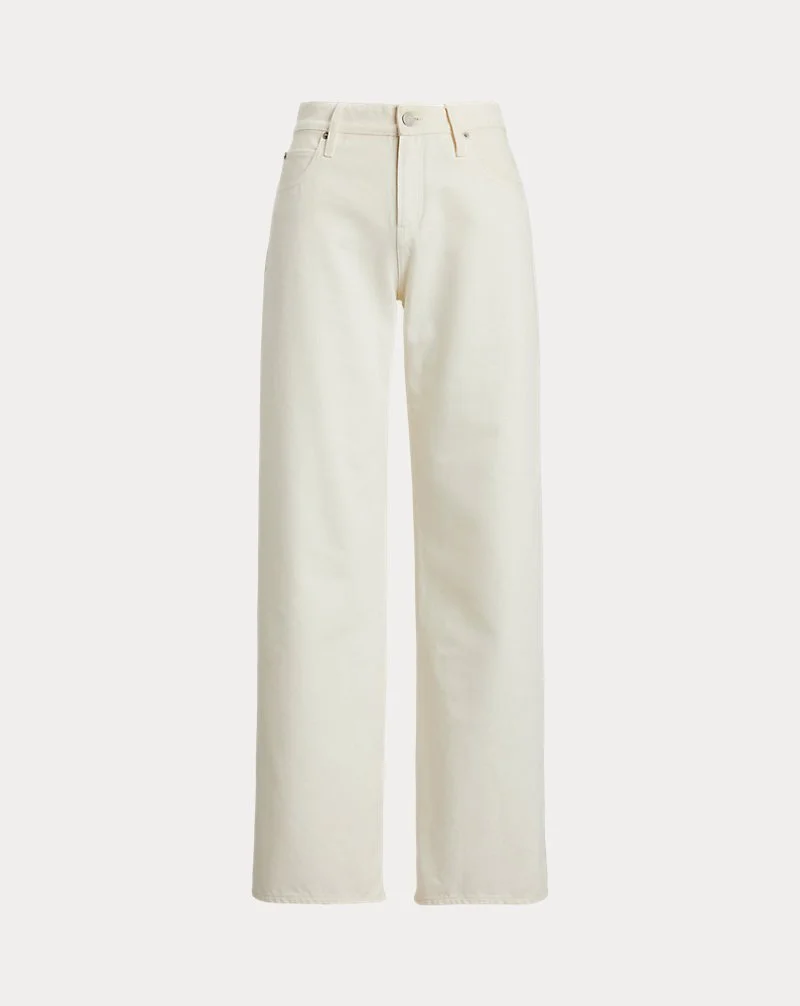 A ’70s-coded wide leg cut in organic denim (12.9 oz) that holds its shape but still moves. The hidden waist pockets keep the front pristine; the ecru reads modern and expensive with anything camel or black.